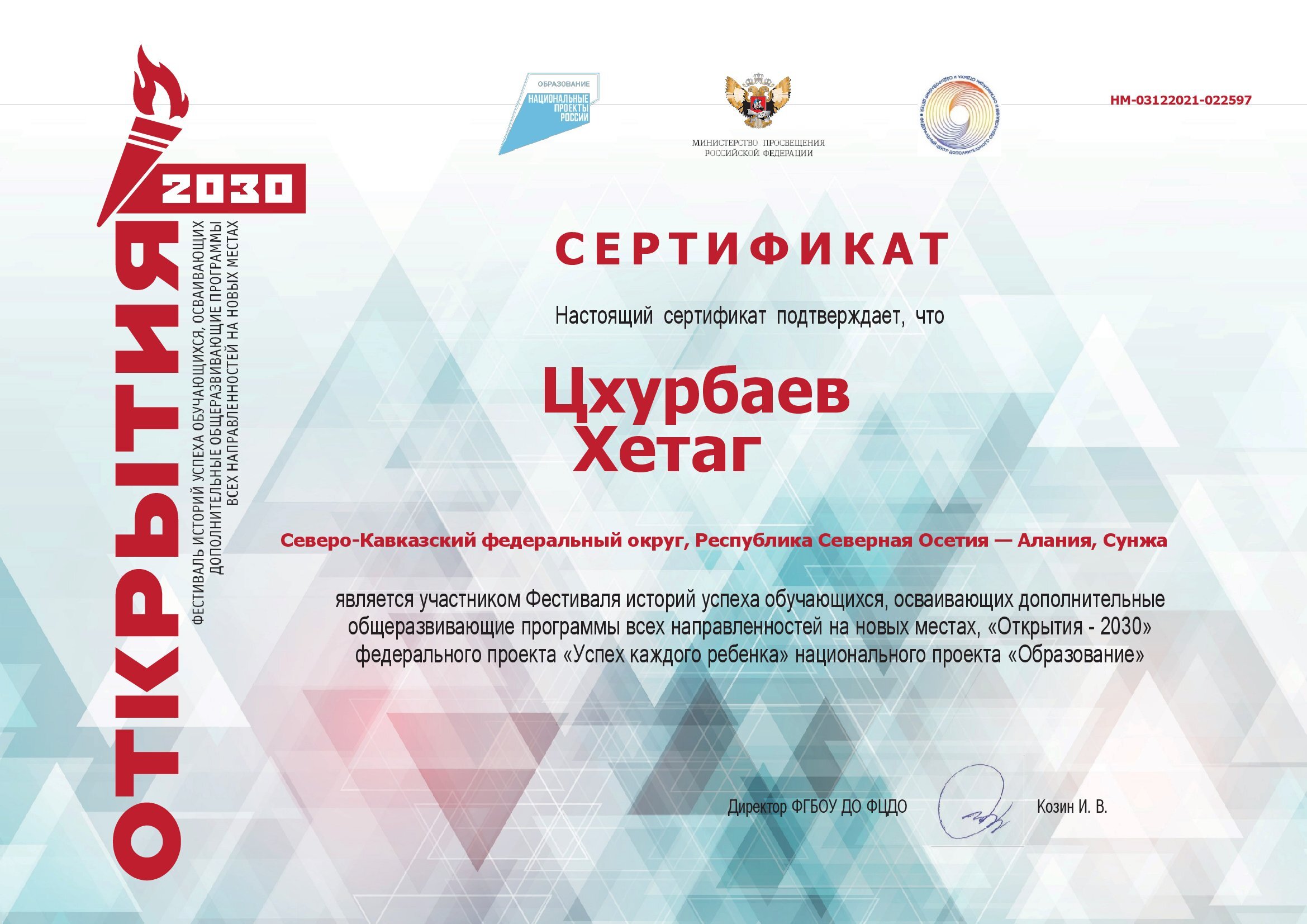 | Федеральный проект "УСПЕХ КАЖДОГО РЕБЕНКА" - 3 декабря 2021 г. В целях продвижения историй успеха педагогов и обучающихся, осваивающих дополнительные общеразвивающие программы всех направленностей в 2019-2021гг., а также популяризации федерального проекта «Успех каждого ребенка» национального проекта «Образование». ФГБОУ ДО «Федеральный центр дополнительного образования и организации отдыха и оздоровления детей» с 24 по 27 ноября 2021 года провел Фестиваль историй успеха обучающихся, осваивающих дополнительные общеразвивающие программы, «Открытия-2030», в котором обучающие Дома детского творчества приняли активное участие...