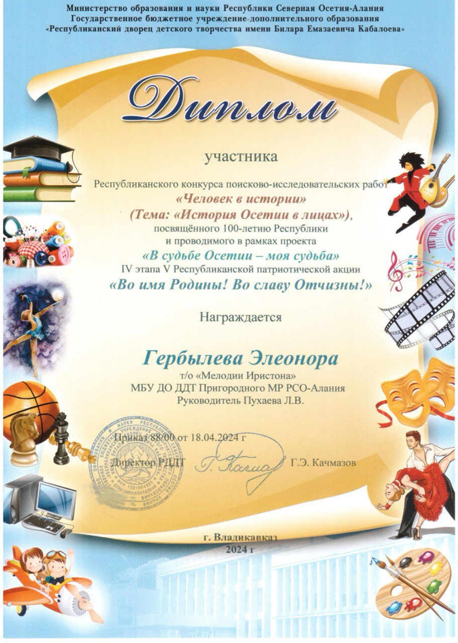 | "Человек в истории"... - 18 апреля 2024 г. Республиканский конкурс поисково-исследовательских работ "Человек в истории" посвященный 100-летию Республики...Ссылка.