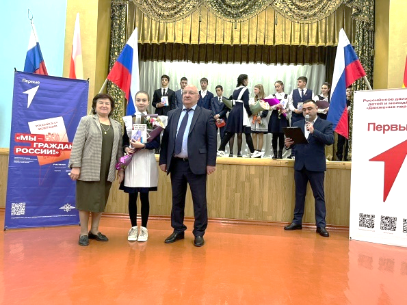 8 декабря 2023 года в Доме детского творчества прошло торжественное событие - вручение главного документа в жизни каждого россиянина – паспорта гражданина Российской Федерации. Этот важный, для присвоения статуса гражданства, подросткам прошло в преддверии государственного праздника - Дня Конституции. Совместно с районным отделением общероссийского общественно-государственного детско-молодёжного объединения «Движение первых». Торжественное мероприятие открыл ведущий праздника, педагог дополнительного образования ДДТ Дзукаев Зураб Гурамович. Он рассказал о том, что получение паспорта для юных граждан — это начало ответственности и самостоятельности, с этого момента ребята сами отвечают за свои действия, а не их родители. Активистам объединения, победителям конкурсов различного уровня главный документ, вручили - глава администрации Пригородного муниципального района - Есиев Руслан Асланбекович и заместитель председателя регионального отделения РДДМ "Движение Первых" - Маргиева Жанна Юрьевна. Ссылка.